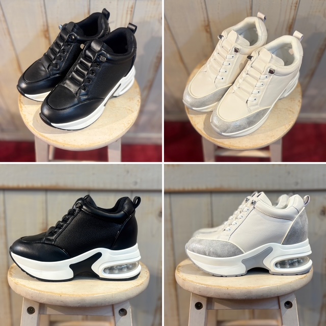 軽量厚底スニーカー💕 厚底なのに軽量設計で長時間快適に過ごせ、スタイルアップも叶えます✨ サッと脱ぎ履きができるので、忙しい日常にも最適✨ 【カラー】 ホワイト×シルバー ブラック スニーカー ¥11,000+tax 2025年8月29日