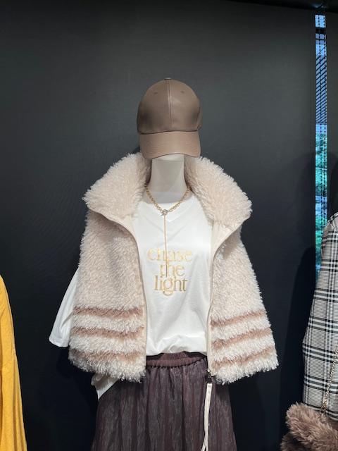 クリクリファーベスト💕入荷しました クリクリっと巻いたファーが可愛い🩷ジップデザインのエコファーベストが入荷しました。 軽くて暖かい💕 コートインにも使える万能なアイテム。 限定数のみの入荷となりますので、お早めにです。 ファーベスト ¥19800+tax ポリエステル100% フリーサイズ 2025年9月4日