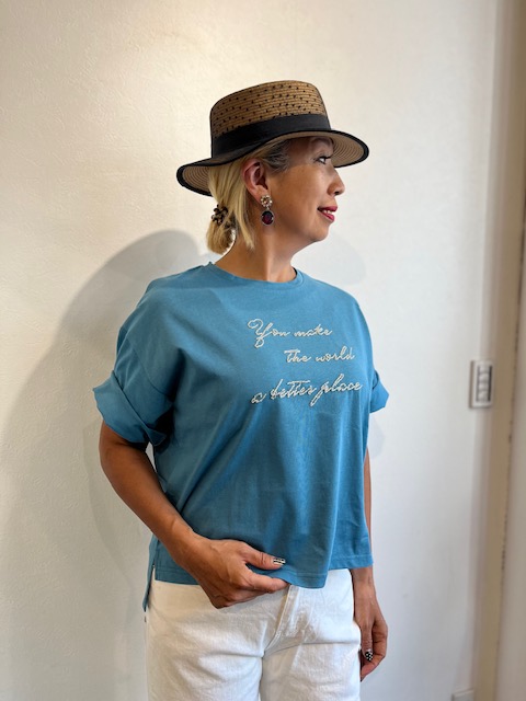 ビーズ刺繍のトップス💕¥8900+tax ビーズ刺繍が素敵な秋一番のトップスが入荷いたしました。少し長めの5半袖なので、 お袖を折り返して半袖にすることもできます💕 上質なコットン素材に、クリアカラーのビーズ刺繍を施してあり、とても手の込んだアイテムです。 まだまだ暑い日々のコーデを爽やかにしてくれる一着。 お色違いはホワイトもございます💕 フリーサイズ 素材 コットン100% コメントは受け付けていません。