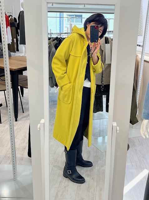 マイクロシープダッフルコート💕¥27000+tax 綺麗なイエローが素敵なダッフルコートが、もう少しで入荷いたします。 なかなか無い綺麗なイエローはデニムコーデにもめちゃお洒落な一着。 限定数のみの入荷となりますので、 気になる方は、先行でのご予約をお勧めいたします💕ロングコートなのに、驚きの軽さもおすすめのポイントです。 展開カラー ホワイト、イエロー、モカ、ミディアムグレー、ネイビーの5カラー L110/B117 ポリエステル 100% 納期:2025年10月上旬 MADE IN VIETNAM モデル身長165cm 2025年9月18日
