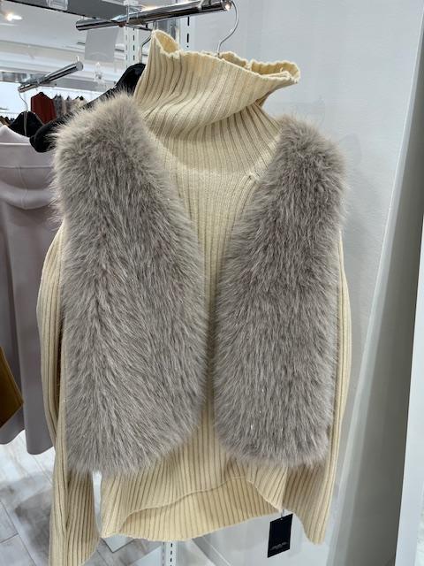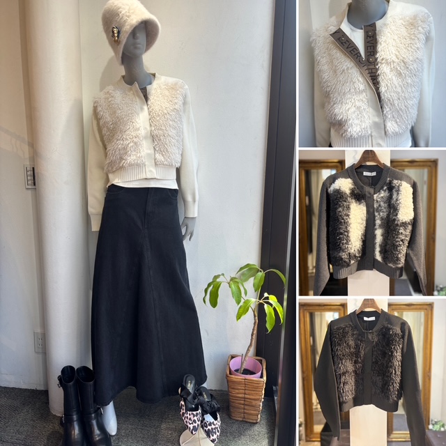 ファーベスト💕¥9900+tax いよいよ秋になりましたね。 上質なエコファーのベストは、ちょっとだけキラキラっと光るラメ糸が華やかな一着です。 驚きのプライス‼️9900円+tax インナーニットも、オフ白の他に、 レッド、マスタード、グリーン、チャコールグレー、ブラックなどが入荷しております。 ニット ¥12000+tax お早めに見にいらして下さいませ。 2025年10月8日