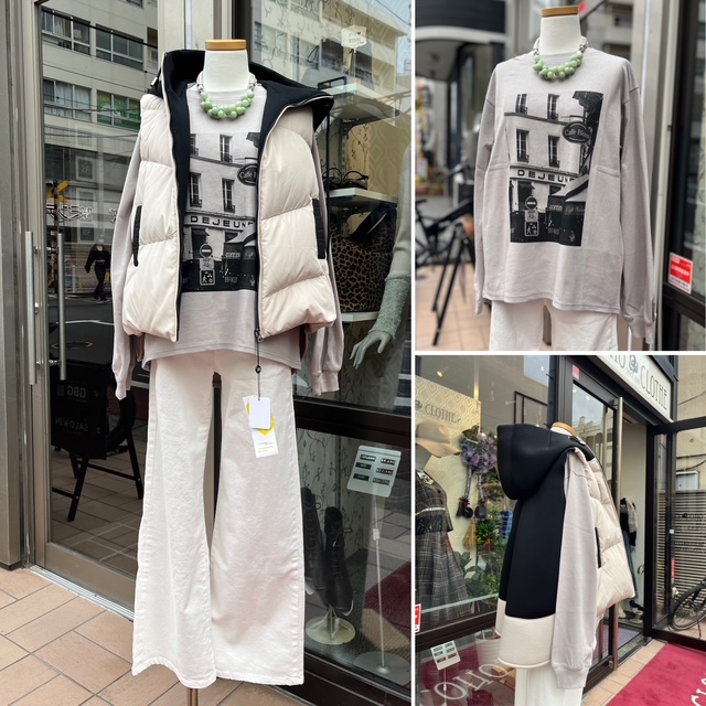 ダウンベストのコーデ💕😊 ダウン90%フェザー10%の配合で、軽量&極暖のダウンベストは、衝撃の¥13800 外税💕💕💕おかげさまで本日も大好評でしたーーー コートインにも使えるから、今から春先までヘビロテできそうーーー💕😆 完売間近ですので、お早めにチェックくだささいね。 お写真の、アイボリー✖️ブラックの他に、ブラック✖️ブラック、ブラック✖️カーキもございます。 2025年10月12日