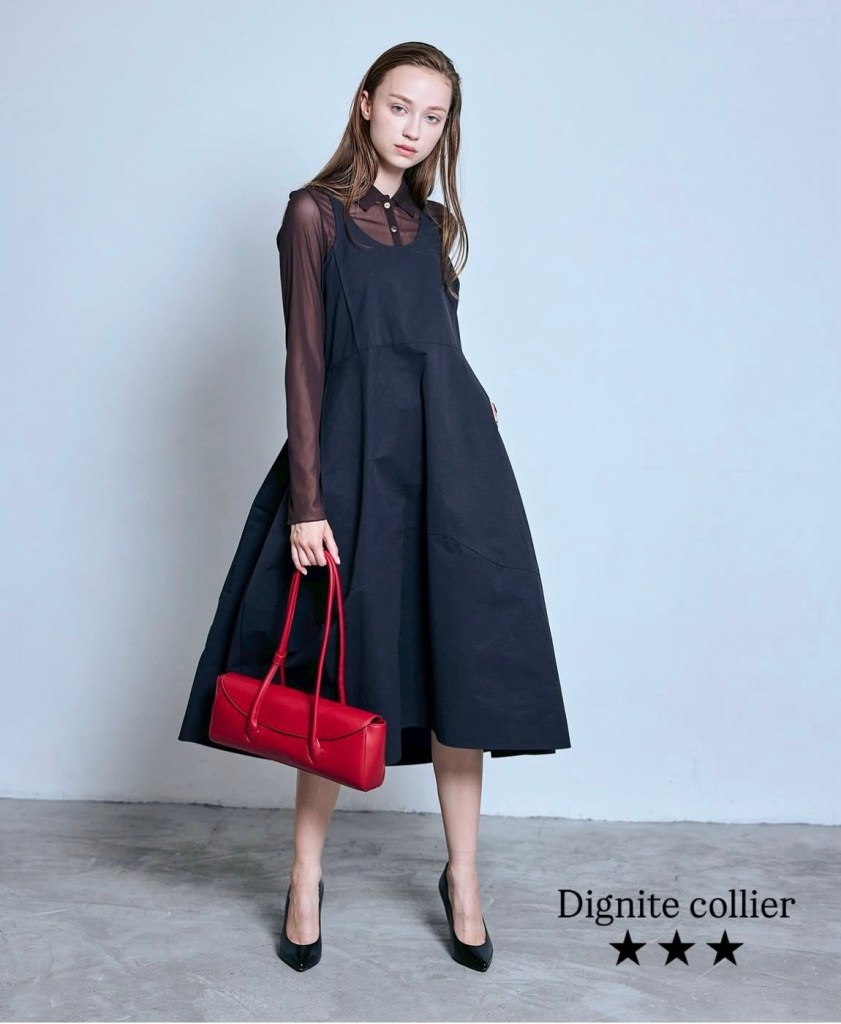 シックな赤のカラーがコーデに華やかさをプラス💕