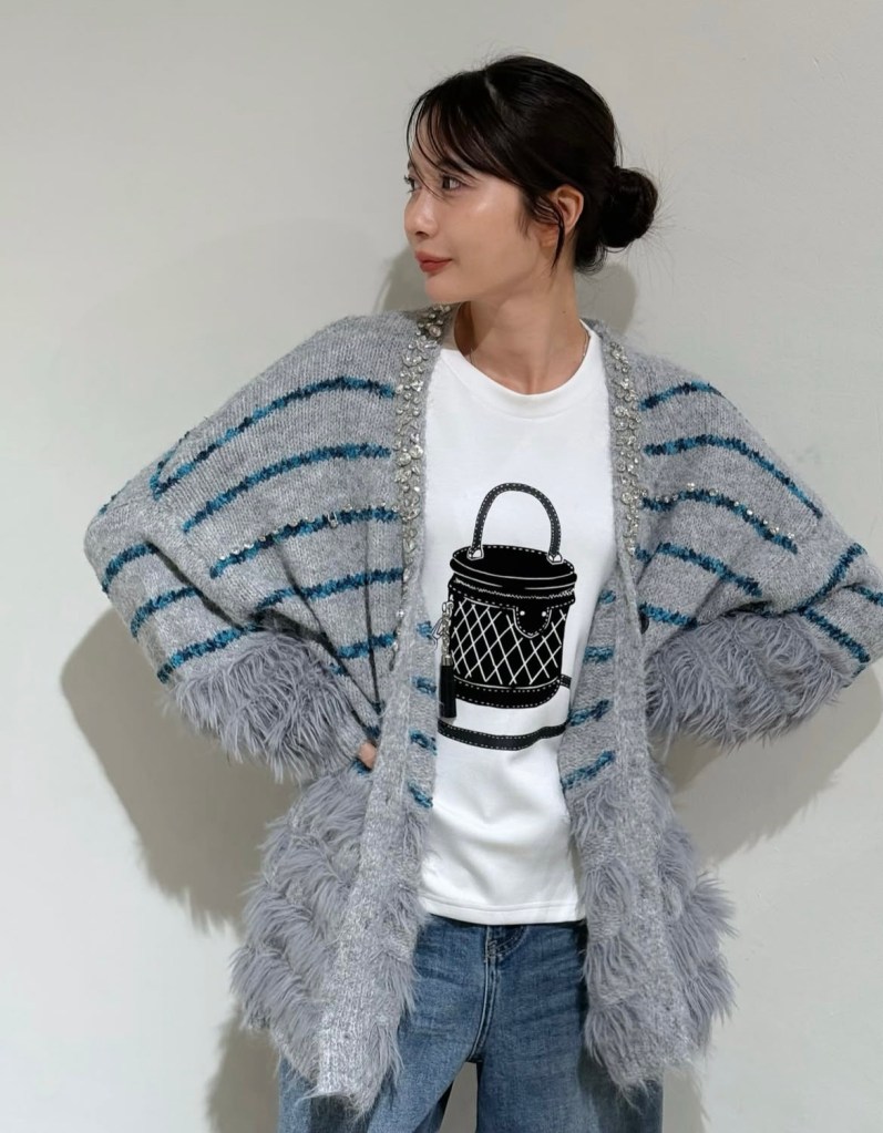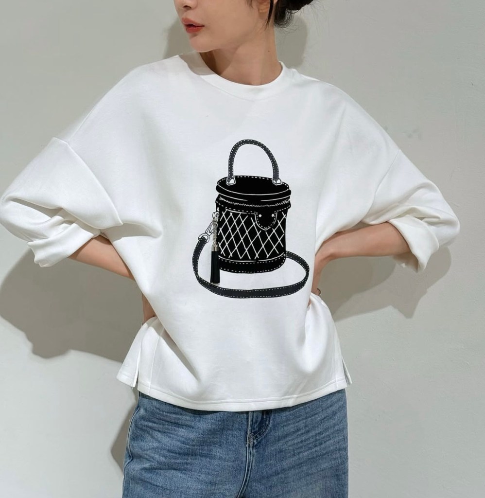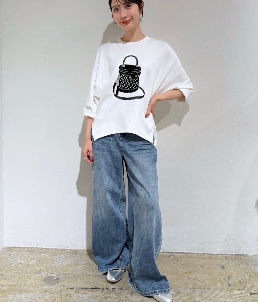 立体的なバックモチーフが印象的なプリントトップス。実際にチャームが付いた、遊び心のあるデザイン。