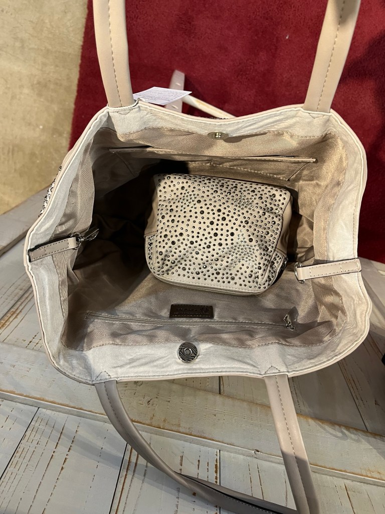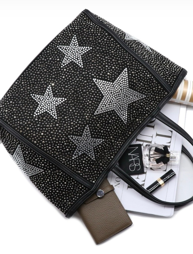 マットなビジューが散りばめられた軽量のトートバッグは、星のビジューの可愛いポーチ付き🎉🎉🎉