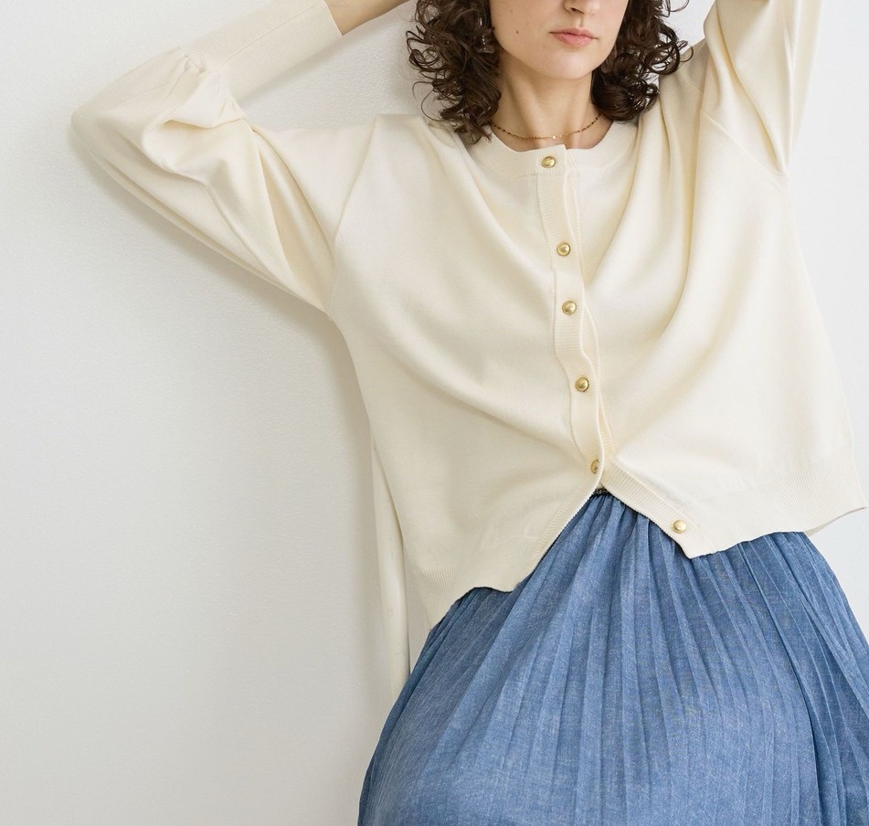 春色カーディガン💕¥4950 軽くて暖かい、春色のカーディガンは、冷たい春の気温から、守ってくれる必需品。 定番のアイボリーと爽やかなサックスブルー の2カラー。シンプルなクルーネックに金ボタンがアクセントです。 素材/レーヨン67% ポリエステル33% コメントは受け付けていません。