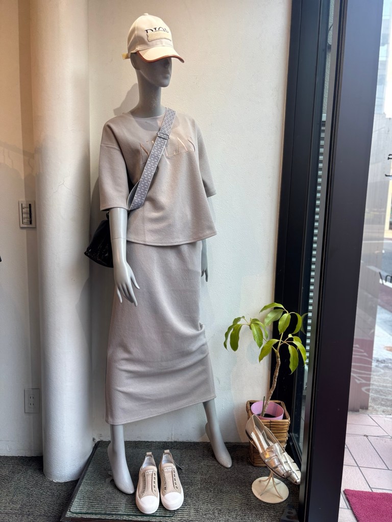 ロゴ刺繍5分袖トップス&スカート💕 ソフトなスウェット素材で着心地抜群✨ 刺繍のロゴが大人っぽさを演出してくれます✨ セットで着るとワンピース見えも♪ トップス ¥11,000+tax スカート ¥12,000+tax コメントは受け付けていません。
