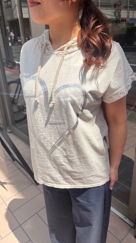 インポートフード付きトップス なんと言ってもフードとお袖がレースに なっているトップス🇮🇹 胸元には大きめのハートが シルバーで描かれています♪ インポートの良さがたくさん詰まった フード付きトップスは 税込9,790円🍀 コメントは受け付けていません。
