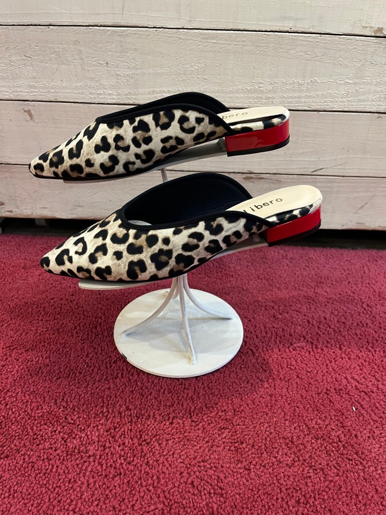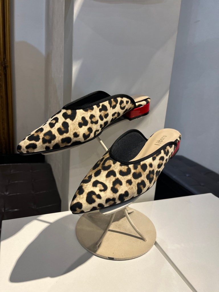 レオパード✖️レッドのミュール ¥13800+tax めちゃお洒落なレオパードのミュールに赤いエナメルのヒールがお洒落💕 フカフカ低反発のソールで極上の履き心地です💕 22.5cm〜24.5cm 2026年4月28日